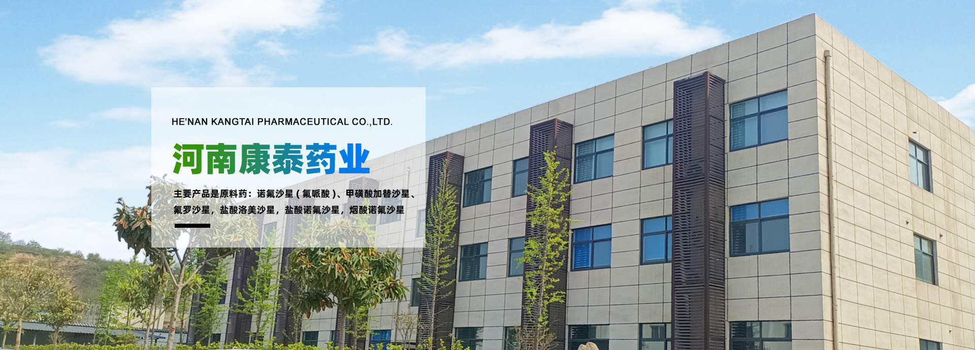河南康泰藥業有限公司位于鄭州市西40公里處的滎陽市汜水鎮康泰路338號,廠區占地面積36000㎡,公司是原河南省食品藥品監督管理局定點生產第三代喹諾酮類抗菌素藥物原料藥及中間體的專業生產廠,主要產品是原料藥:諾氟沙星(氟哌酸)、甲磺酸加替沙星、氟羅沙星,鹽酸洛美沙星,鹽酸諾氟沙星,煙酸諾氟沙星。